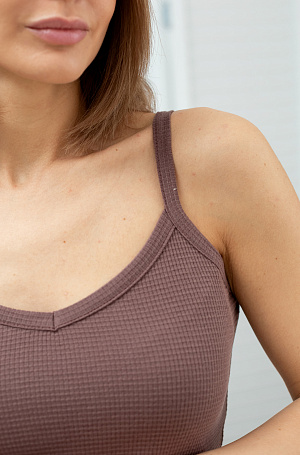 Стильная майка женская домашняя бельевая из хлопкового трикотажа вафля кашкорсе на тонких бретелях.