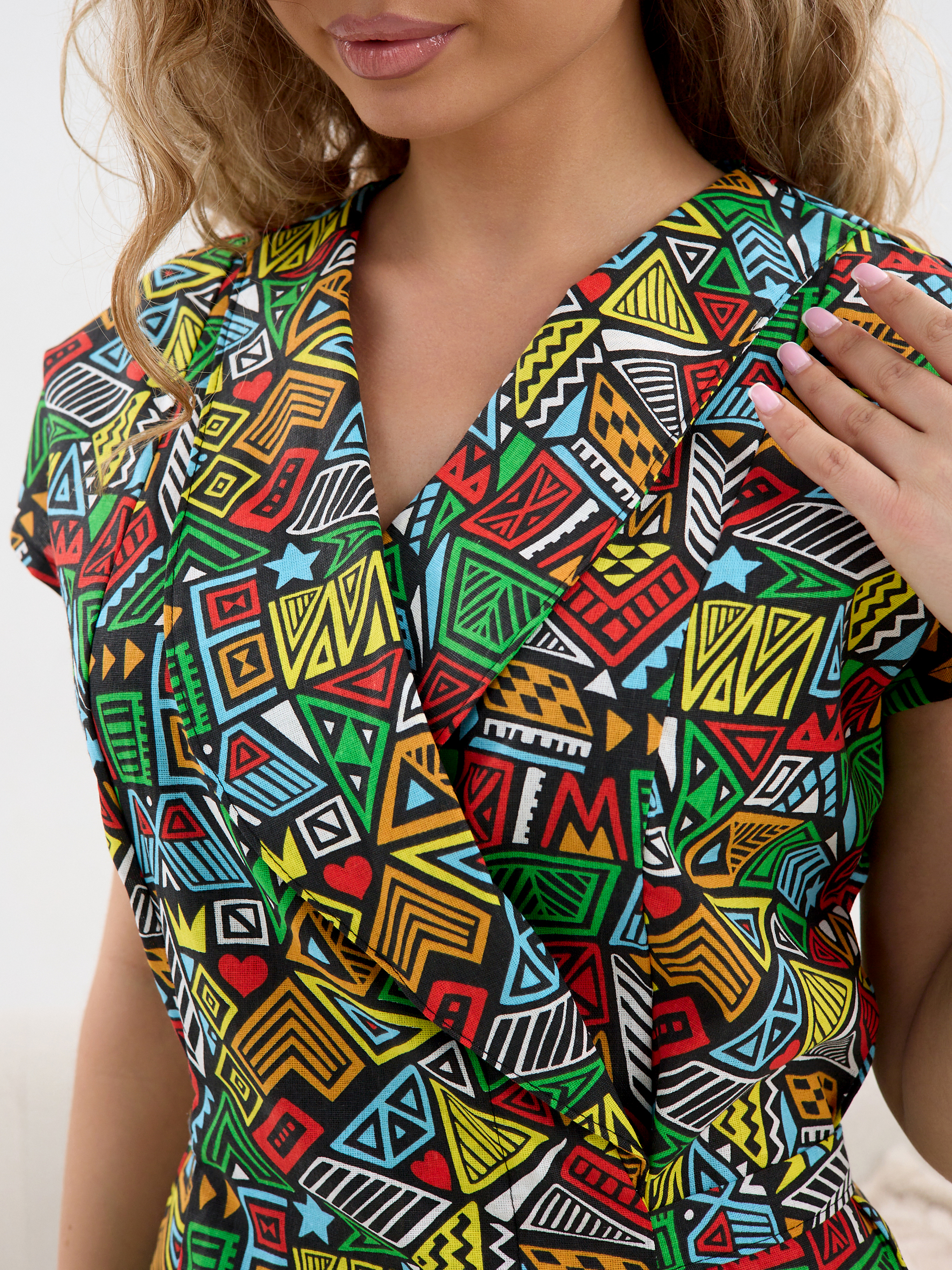 Халат домашний бязевый от компании Лето-Текс, выполнен из натурального хлопчатобумажного материала из бязи - 100% хлопок. Ткань бязь изначально жесткая, после стирки становится мягче. Халат женский на запах с накладными карманами и спущенным плечом. Халат запашной ниже колена, рост модели на фото 165 см., а ростовка халата 170см. Достоинствами такого халата для дома являются его экологичность и безопасность, он не вызывает аллергии, кожа в нем дышит, а влага впитывается. Домашний халатик отлично подойдет для дома, надеть с утра или после ванны, не сковывает движений и отлично сидит по фигуре и подчеркивает талию. Халат летний женский длинный с коротким рукавом подойдет для беременных роддома, для кормления грудью, для кормящих мам. Халат больших размеров хороший подарок на день рождения 8 марта для мамы и бабушки. Халат рабочий отличный вариант для дачи и в качестве униформы. Халат хлопок на запах женский отлично подойдет в качестве домашней одежды для полных женщин.
