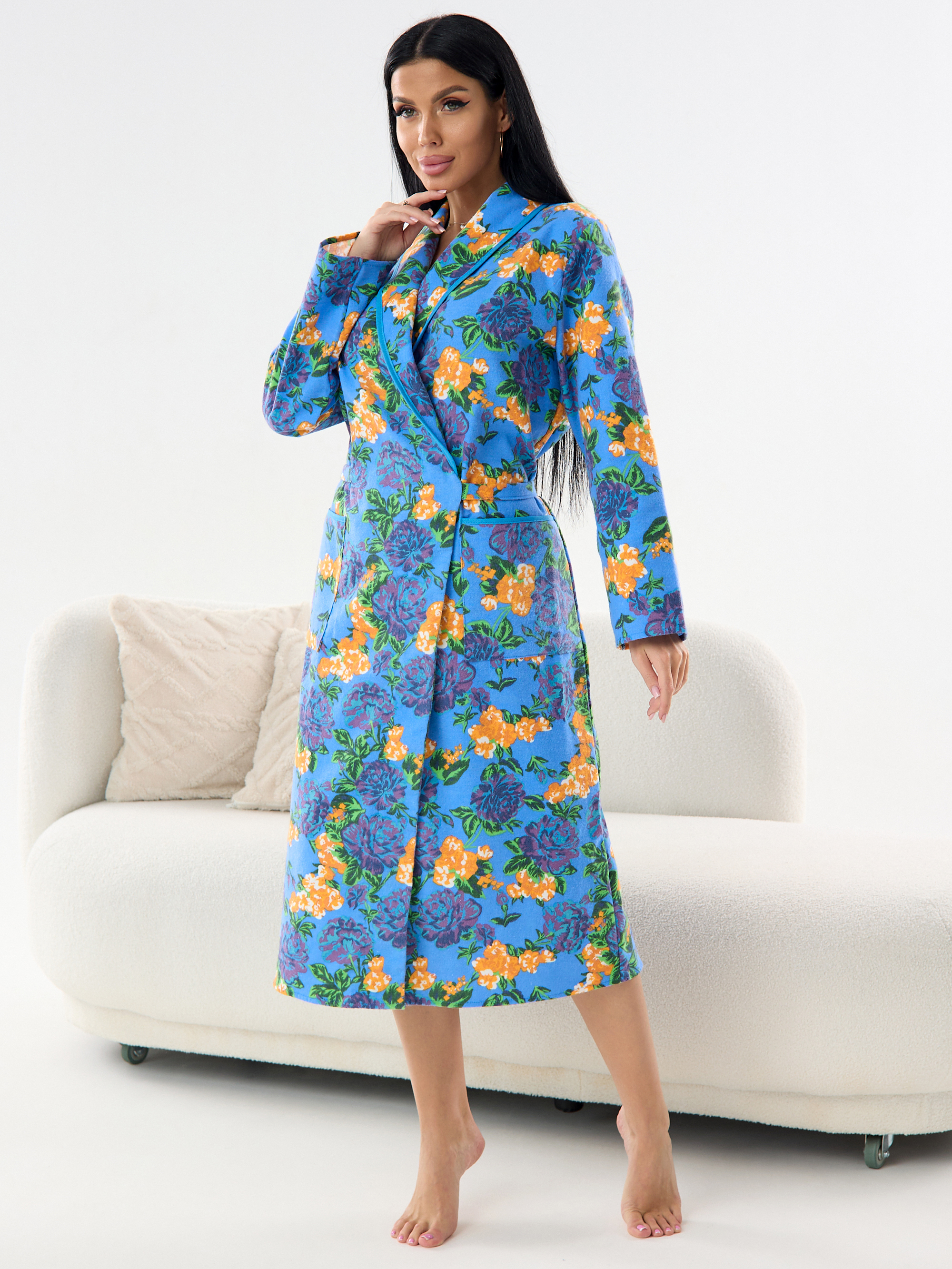 Халат фланелевый женский с запахом от Лето-Текс то, что надо для комфортного отдыха дома. Халат байковый женский с длинным рукавом и накладными карманами на запах приятно надеть после сна, душа или теплой ванны. Женский домашний халат хлопок запашной теплый выполнен из мягкой дышащей ткани мягкой фланели. Зимний халат благодаря широкому размерному ряду подойдет как домашняя одежда для полных женщин больших размеров, а также для беременных и кормящих мам. Женские халаты больших размеров удобно будет взять в роддом благодаря тому, что теплый женский халат с застежкой на запах его удобно будет быстро надеть и снять. Халат для дома длинный отличный подарок на Новый год или День рождения для мамы и бабушки.